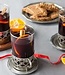 Fles met bedrukking van Sint op zijn paard. Even opwarmen en klaar. Een heerlijke winterwarme wijn met 10% alcohol.